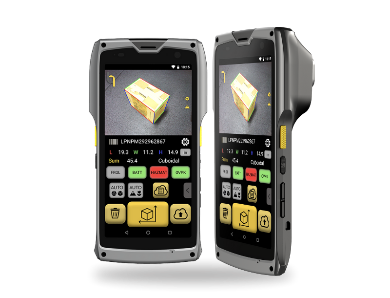 O QBOID Perceptor M2 integra sensores 3D/2D e scanner de código de barras em dispositivo Android portátil. Determina instantaneamente dimensões LxWxH de itens cuboidais ou irregulares através de software de visão computacional avançado.
